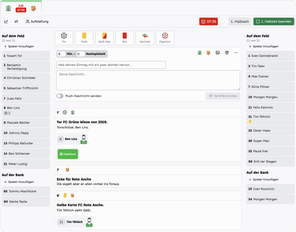 In einem Sportverein ist am Ende am Wichtigsten, was auf dem Platz passiert. Steuer alles Rund ums Spielgeschehen direkt aus ClubShare.